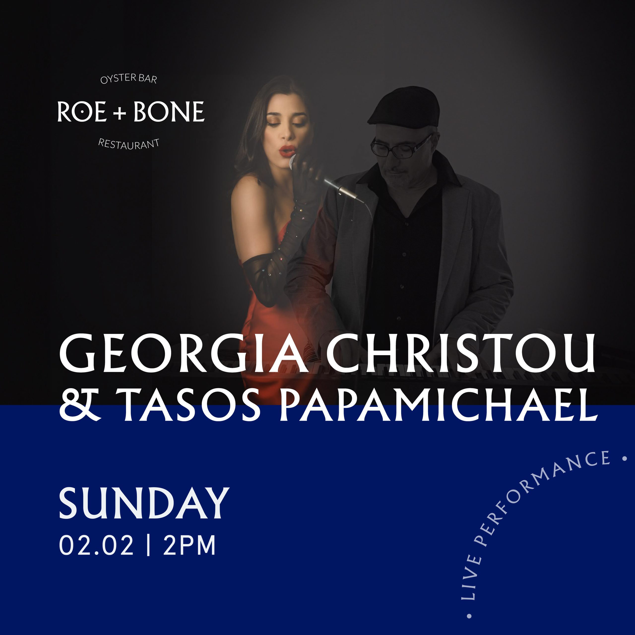 This Sunday, 16/02 at 2PM let Georgia Christou’s soulful voice and Tasos Papamichael’s captivating piano melodies elevate your afternoon at Roe + Bone. 🎹✨ Pair the live music with our exquisite dishes and signature cocktails for a truly refined experience. ✨